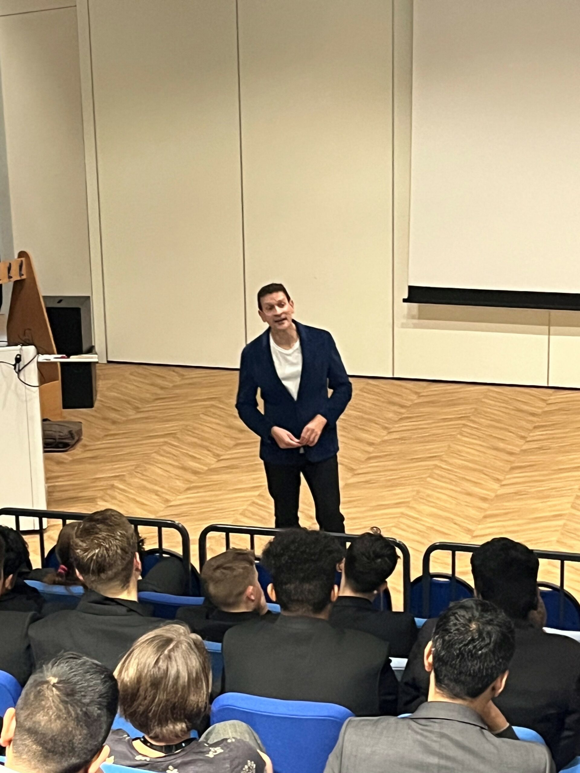 Students from Shireland Collegiate Academy and West Bromwich Collegiate Academy were provided with a unique opportunity to hear about Bruce Daisley’s life experiences growing up on a council estate in Birmingham and the influence these had in his personal career journey.