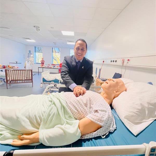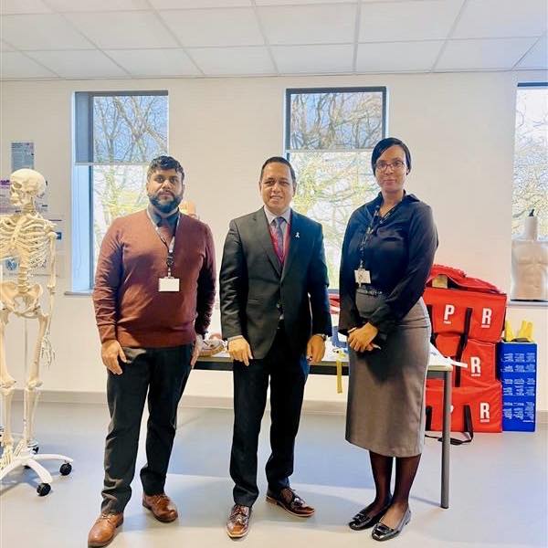 A particular highlight of the visit was the mock hospital ward, where students gain hands-on experience using equipment found in real clinical settings. Cllr Uddin showed great interest in the specialist space and even took part in a CPR demonstration, gaining a first-hand view of how practical learning is embedded into the curriculum.