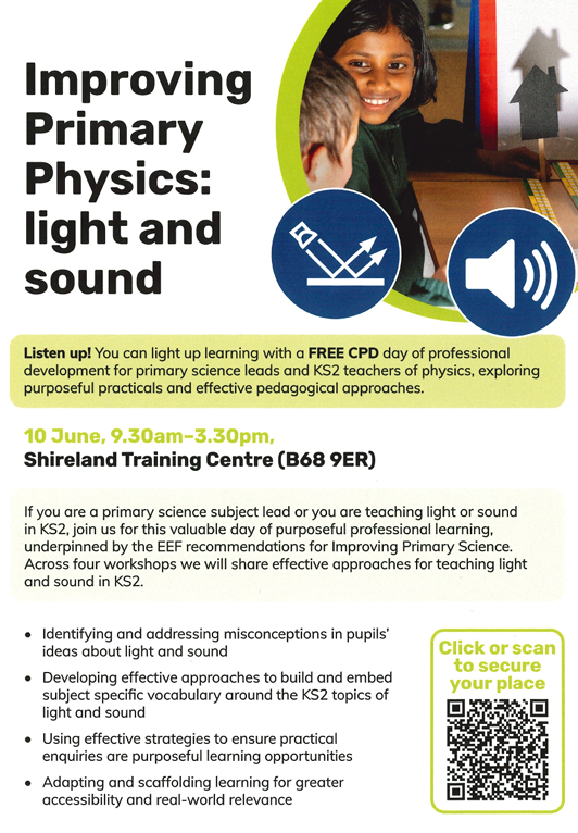 Primary science leads and Key Stage 2 teachers are invited to take part in a free day of professional development focused on improving the teaching of light and sound.