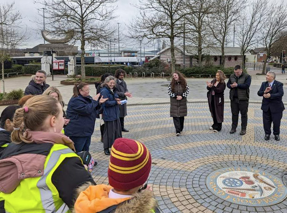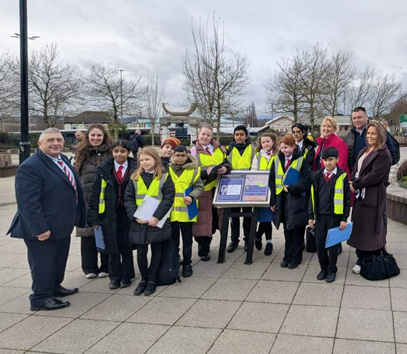 Pupils from Holyhead Primary Academy took part in a community event in Wednesbury town centre to celebrate the launch of new wayfinding totems as part of the Wednesbury Levelling Up Partnership (WLUP) regeneration programme.