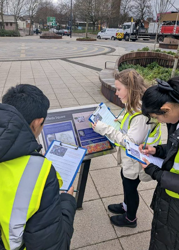 As part of the activity, pupils explored how Wednesbury has developed over time and how its location connects it to the wider West Midlands. They also learned about Ethelfleda Square and its historical links to Anglo-Saxon Mercia, including how early settlements in the region were fortified and how those connections are reflected in the town today.